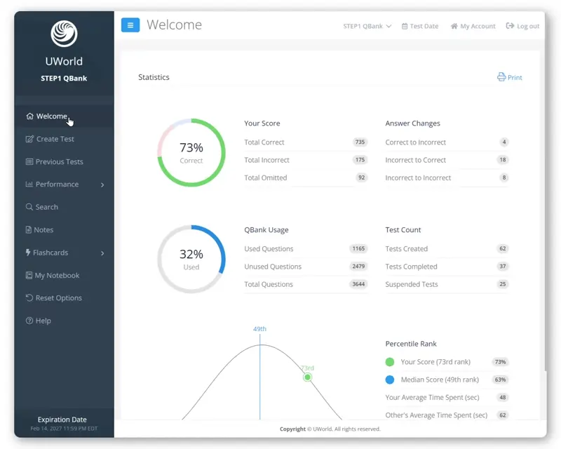 Monitor your progress by subject, system, and topic to identify weaknesses and compare your performance against your peers.